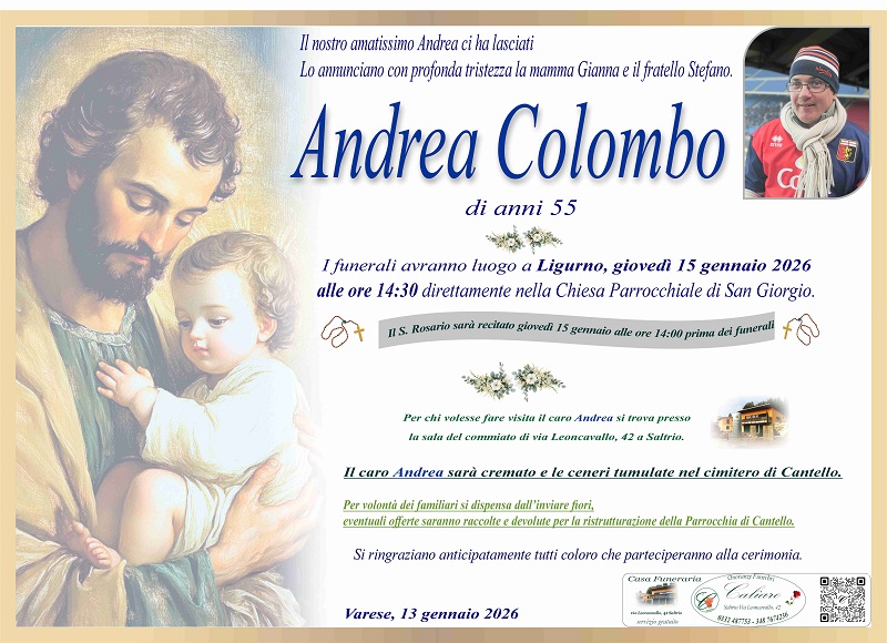 Il caro Andrea sarà cremato e le ceneri tumulate nel cimitero di Cantello.