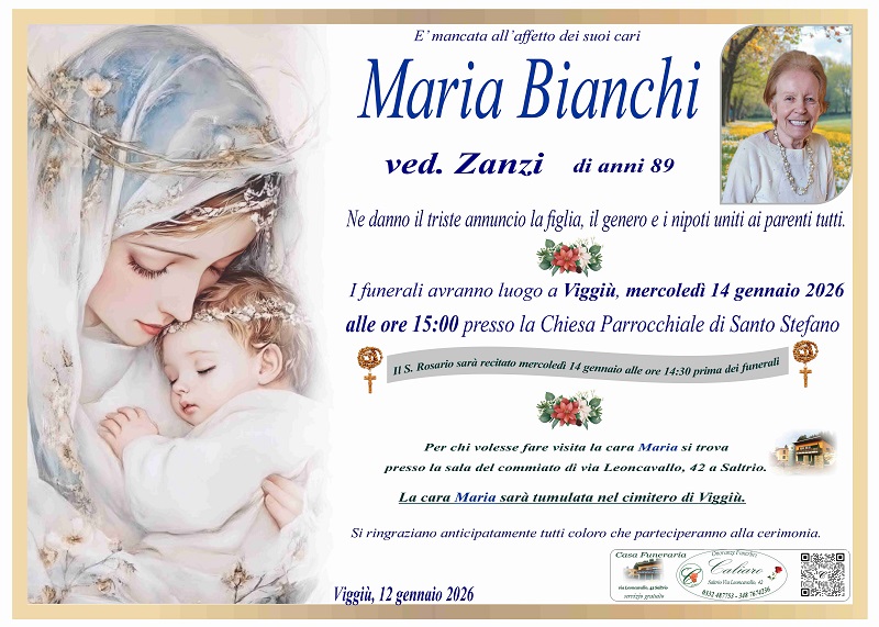 Il S. Rosario sarà recitato mercoledì 14 gennaio alle ore 14:30 prima dei funerali.