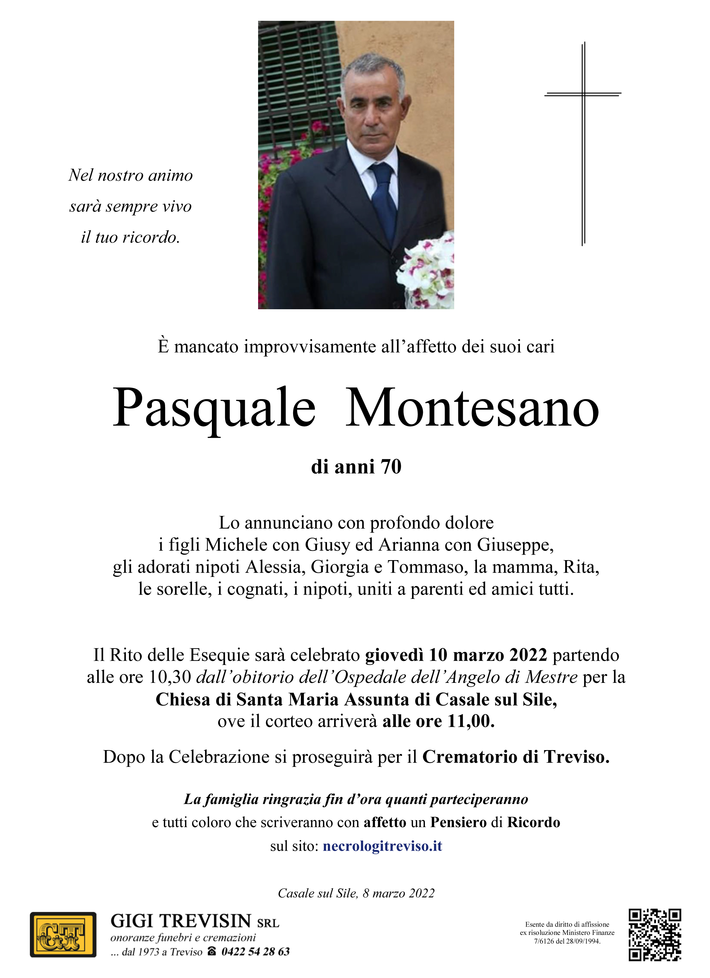 I familiari ringraziano anticipatamente tutti coloro che parteciperanno alla cerimonia funebre