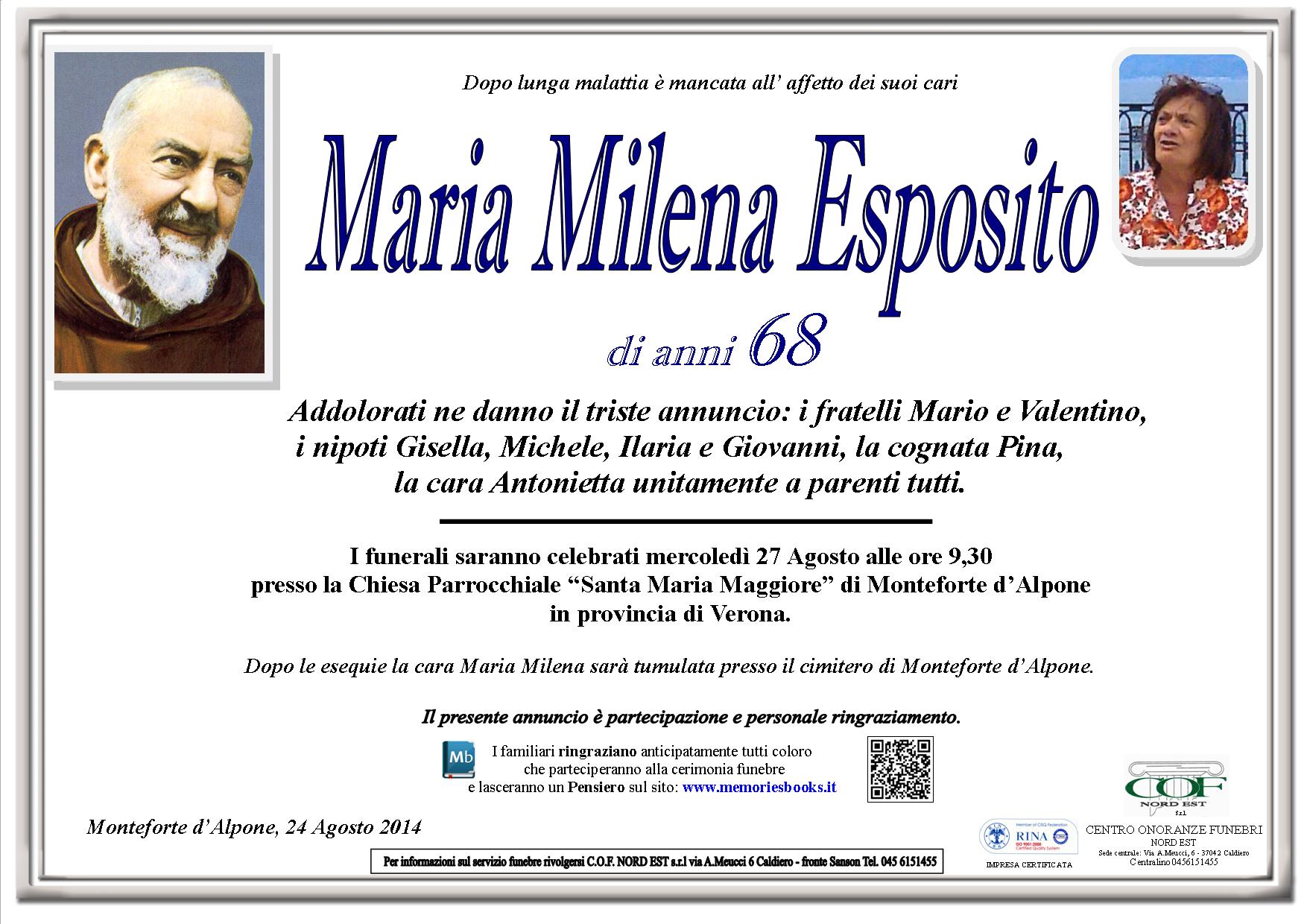 Clicca il pulsante qui sotto per visualizzare sulla mappa il luogo dove riposa Maria Milena Esposito.