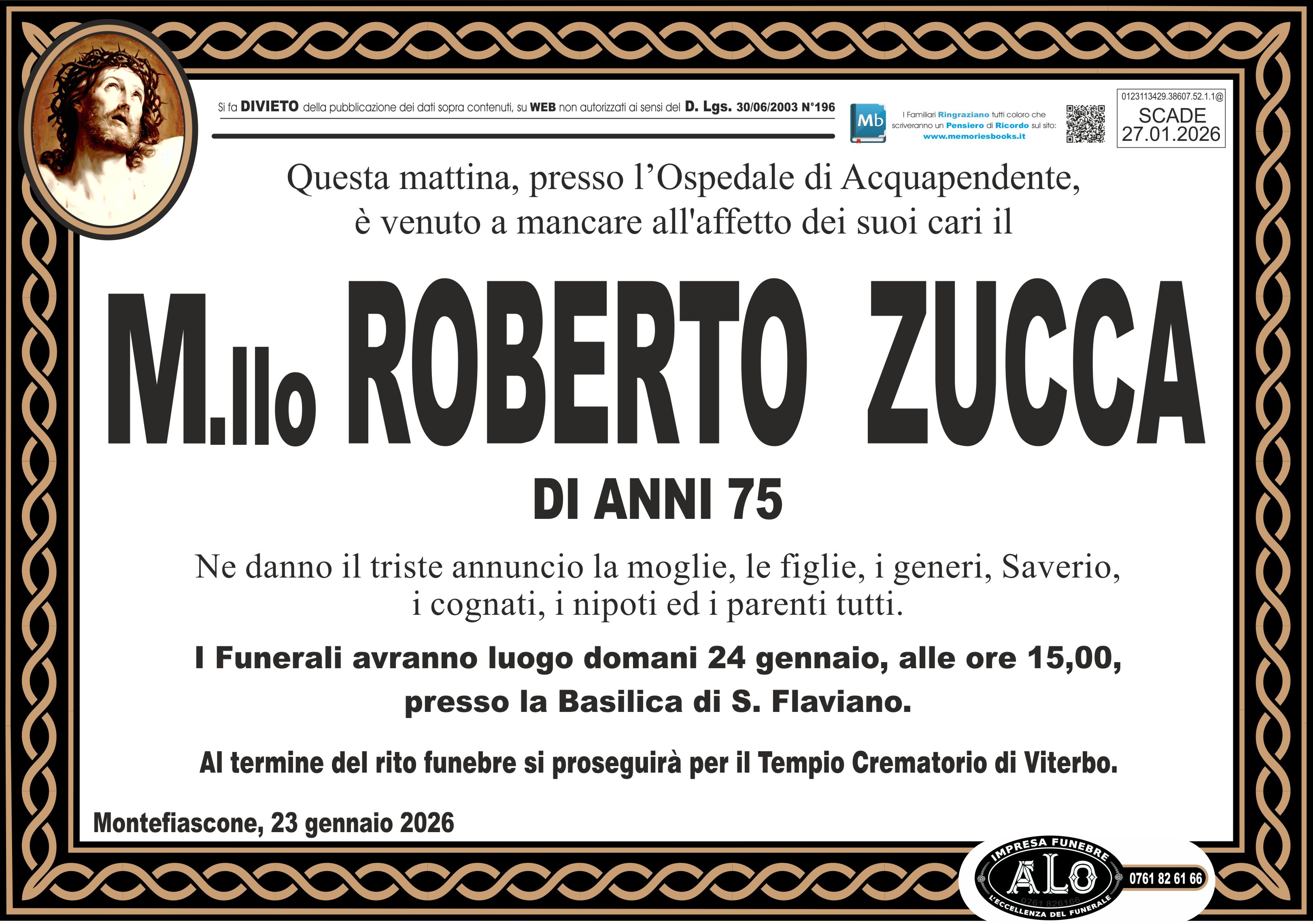 I familiari ringraziano anticipatamente tutti coloro che parteciperanno alla cerimonia funebre