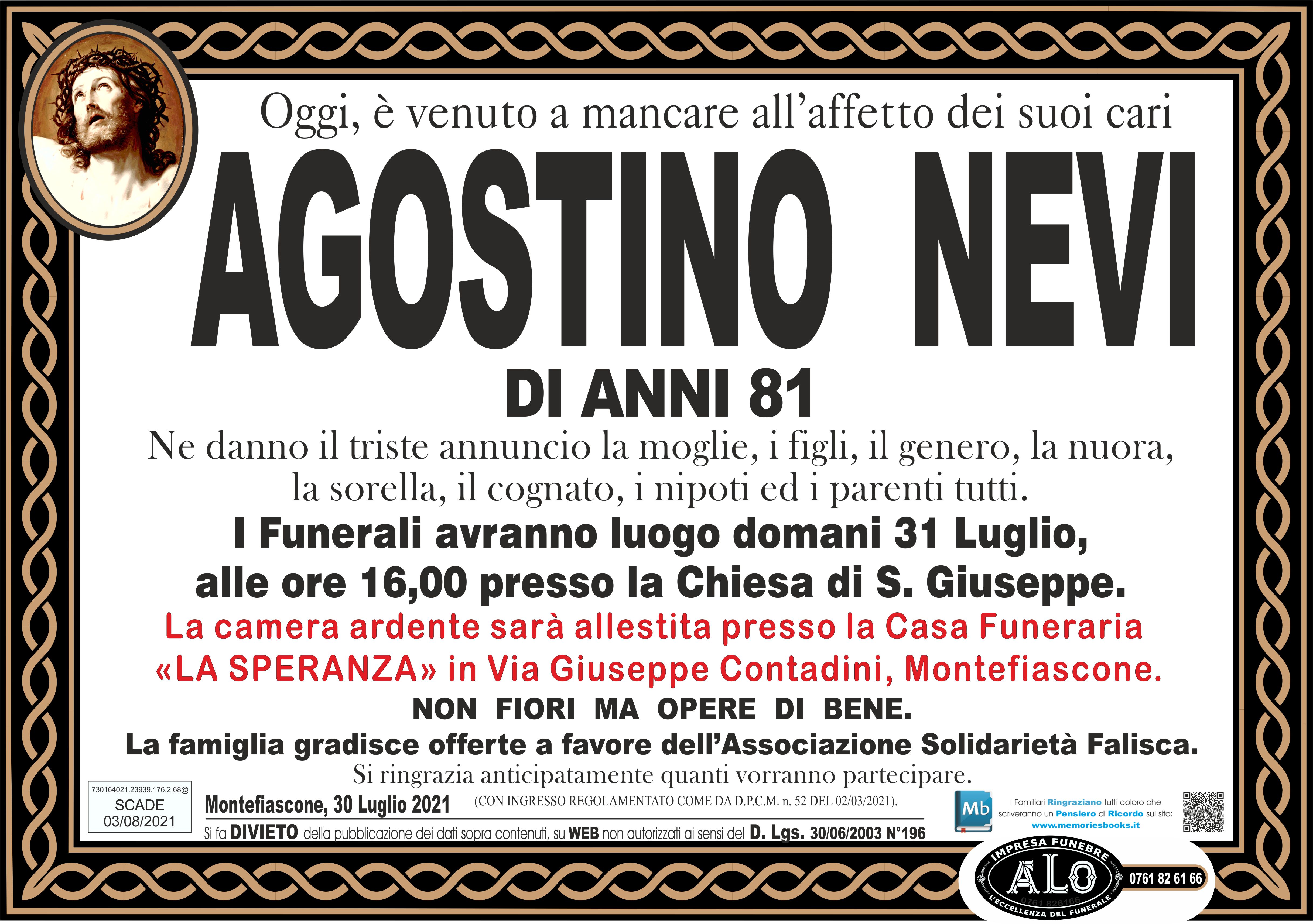 <p style="text-align:center">I familiari <strong>ringraziano</strong> anticipatamente tutti coloro che <strong>parteciperanno</strong> alla cerimonia funebre<br /> e tutti coloro che <strong>scriveranno</strong> con <strong>affetto</strong> un <strong>Pensiero di Ricordo</strong>.</p>