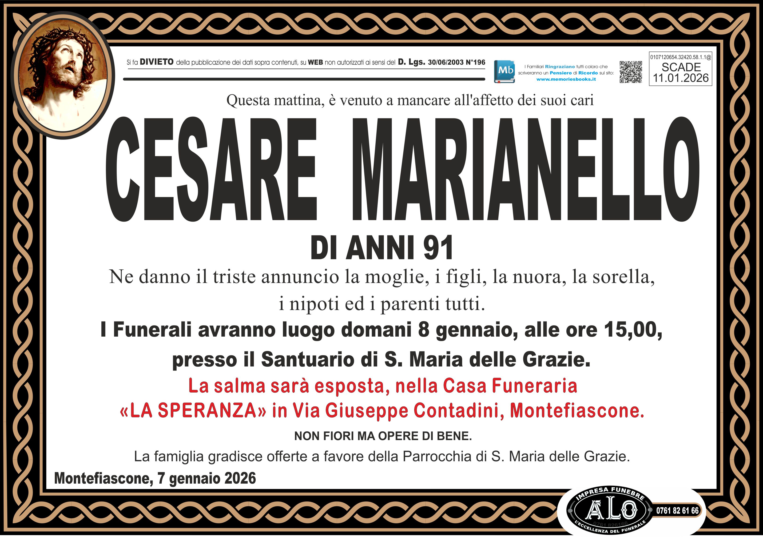 I familiari ringraziano anticipatamente tutti coloro che parteciperanno alla cerimonia funebre