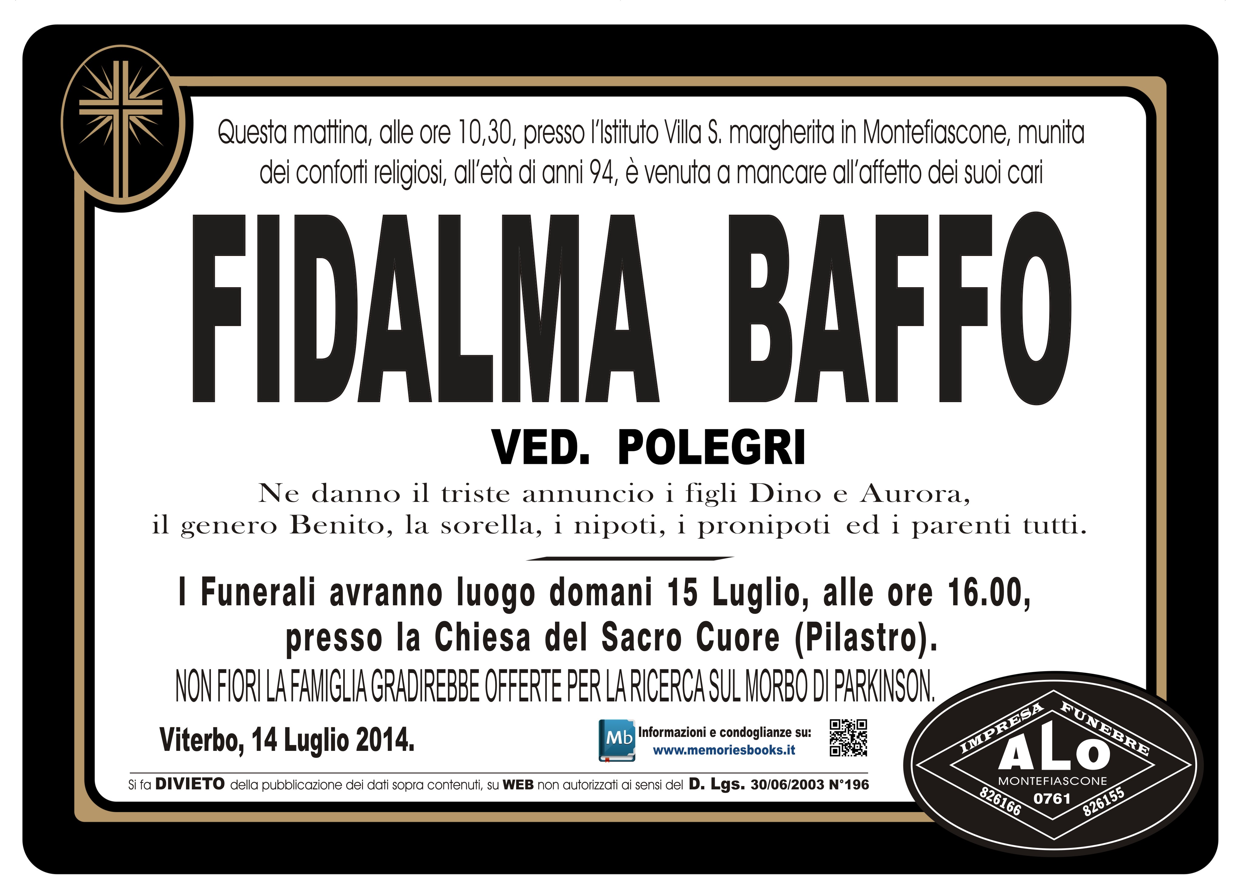 Clicca il pulsante qui sotto per visualizzare sulla mappa il luogo dove riposa Fidalma Baffo.