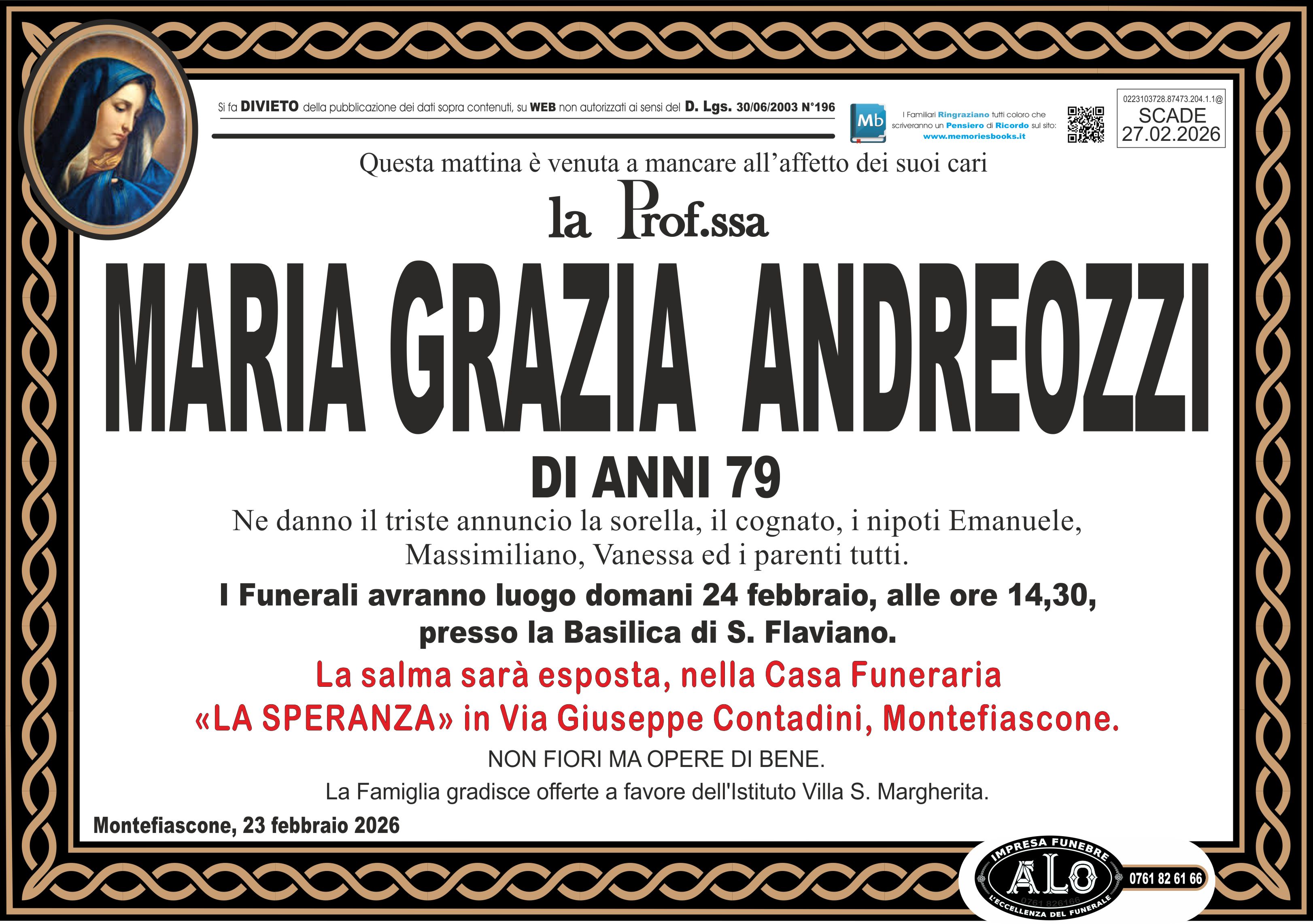 I Funerali avranno luogo domani 24 febbraio, alle ore 14,30,