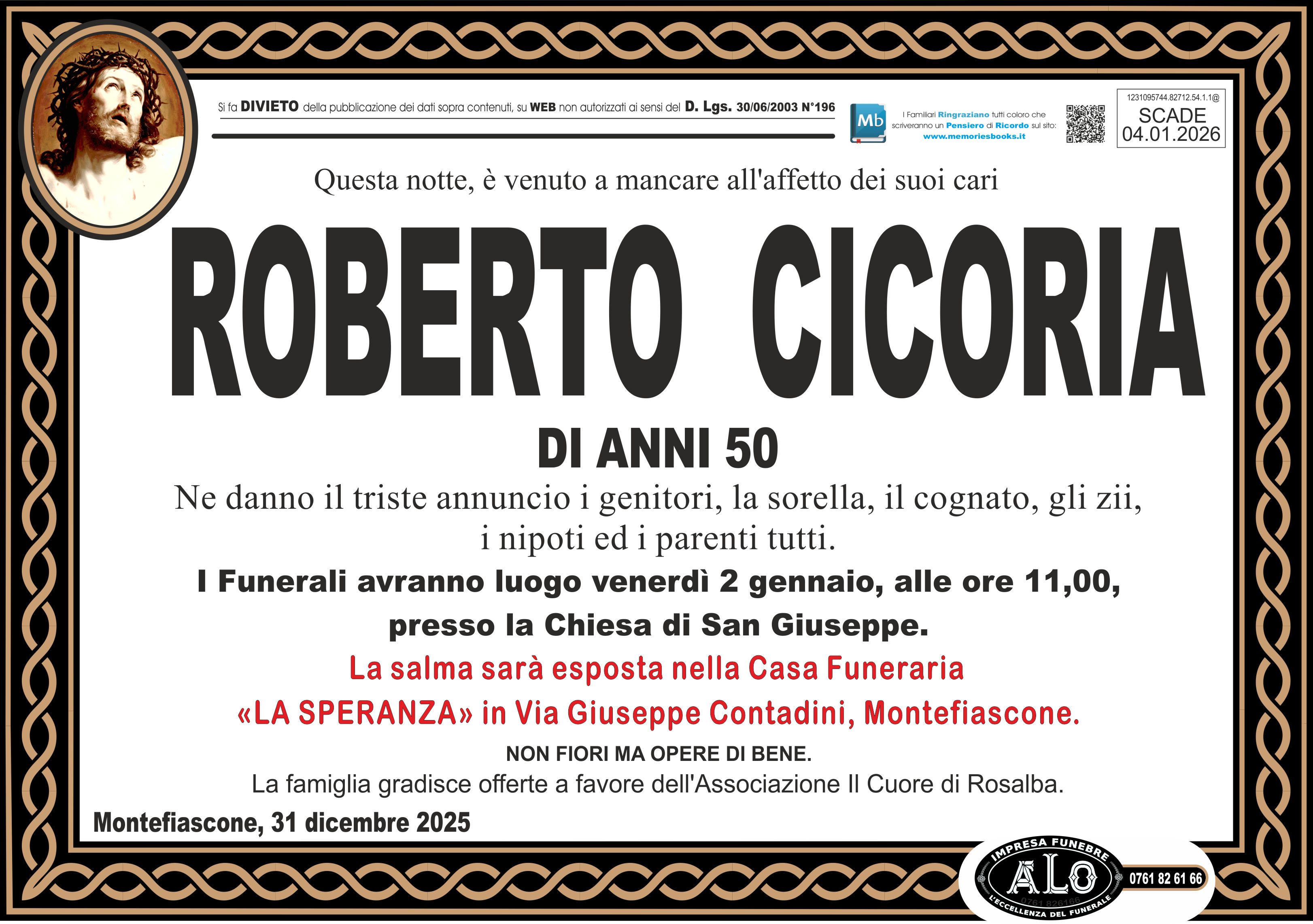 I Funerali avranno luogo venerdì 2 gennaio, alle ore 11,00,