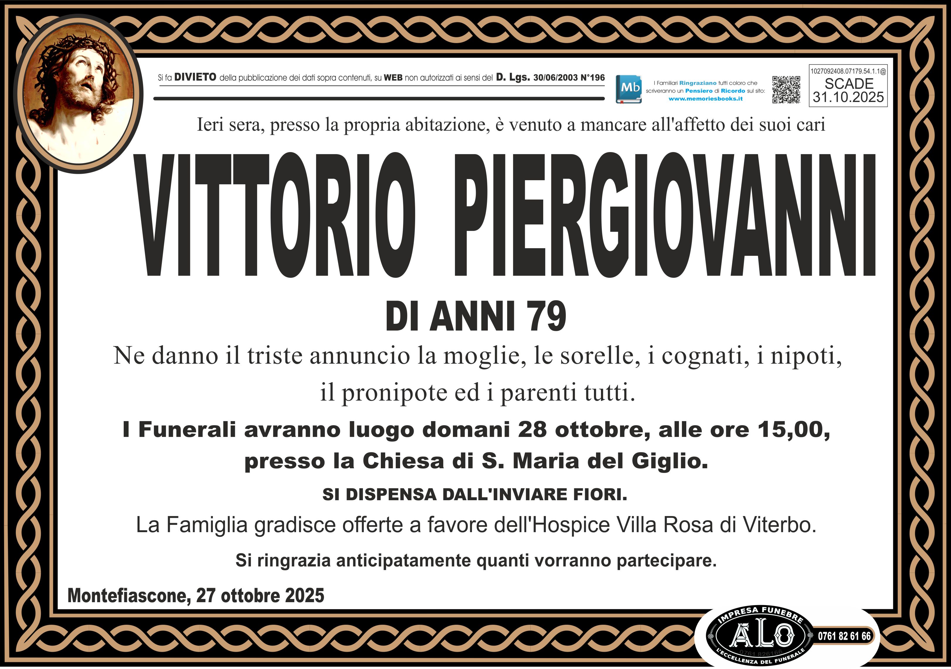 I familiari ringraziano anticipatamente tutti coloro che parteciperanno alla cerimonia funebre
