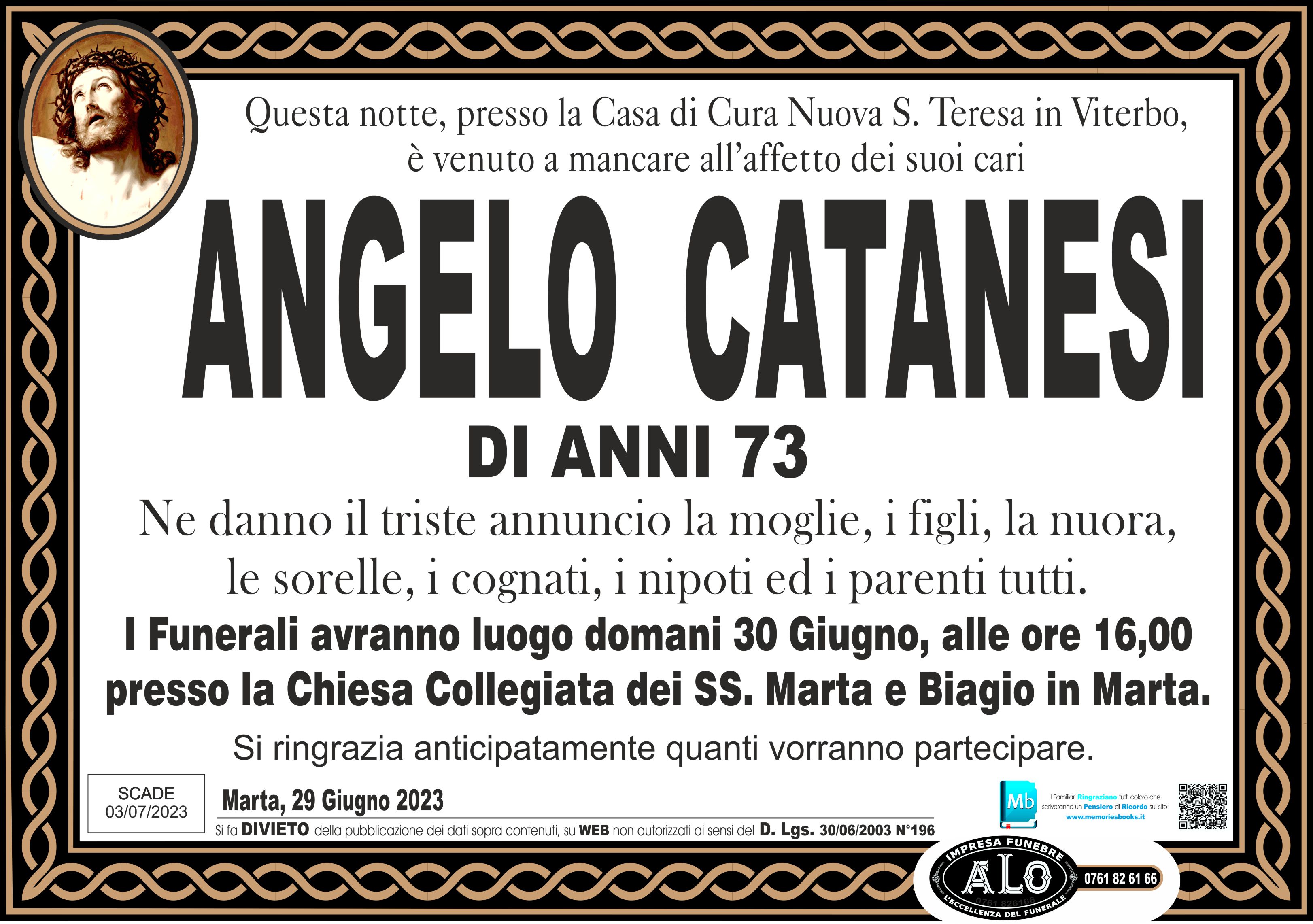 I Funerali avranno luogo domani 30 Giugno, alle ore 16,00 presso la Chiesa Collegiata dei SS. Marta e Biagio in Marta.