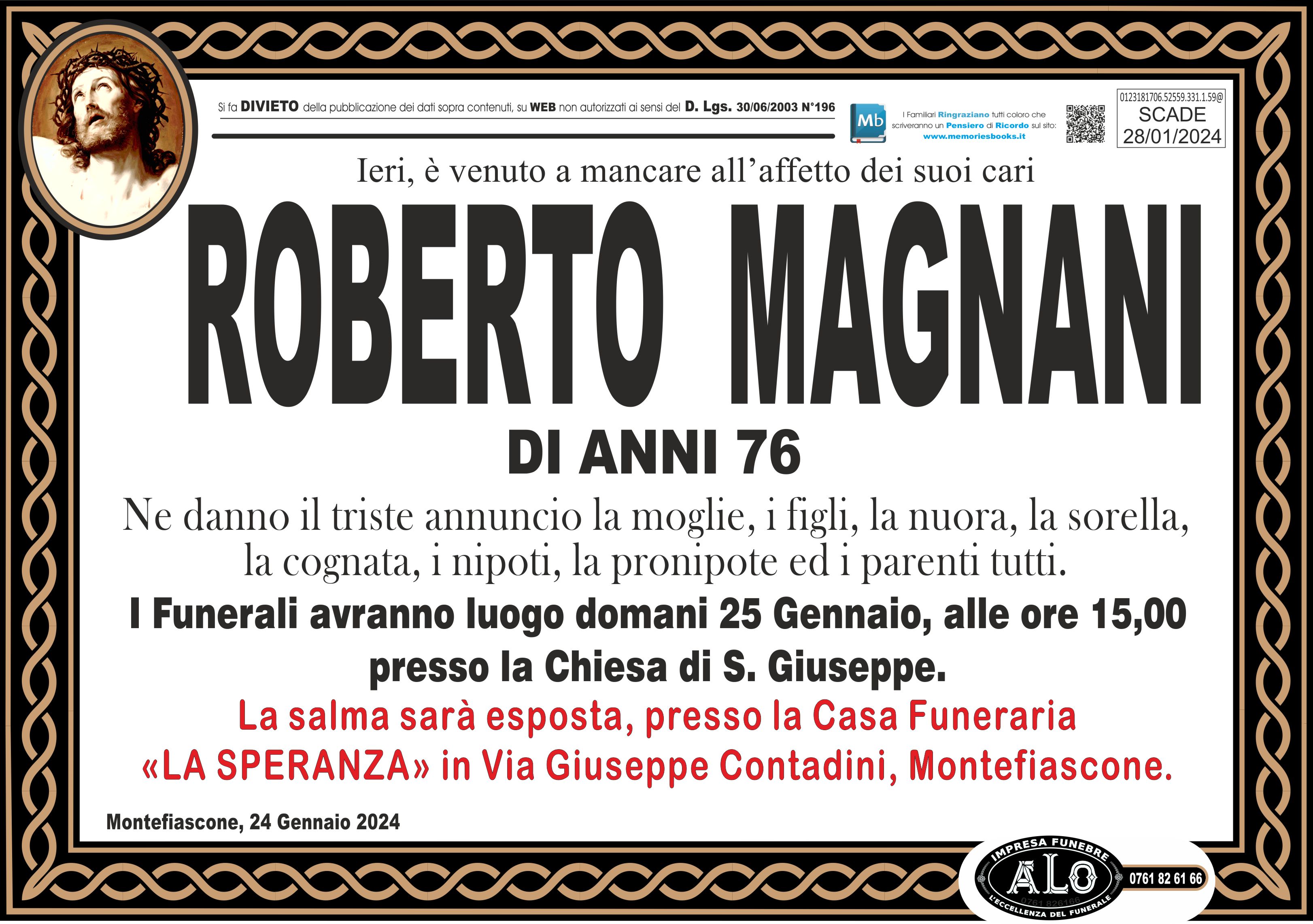 I familiari ringraziano anticipatamente tutti coloro che parteciperanno alla cerimonia funebre